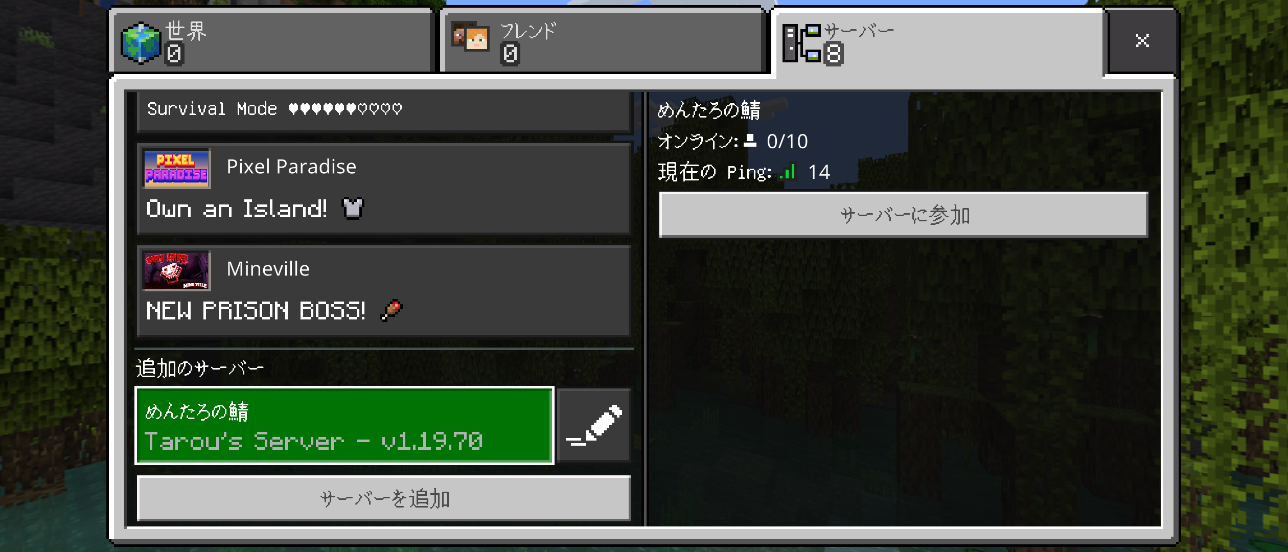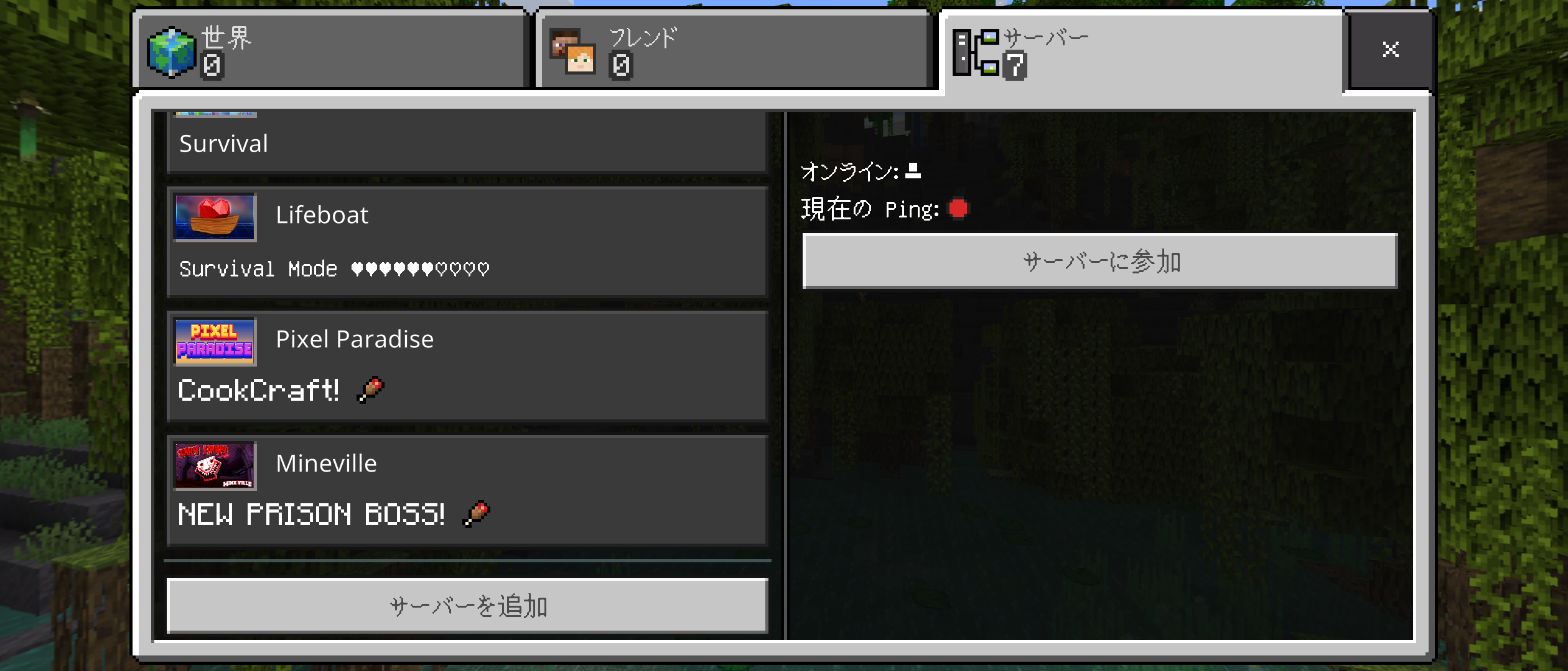 最後に、サーバーが追加されているので「サーバーに参加」を選択することで、参加することができます。