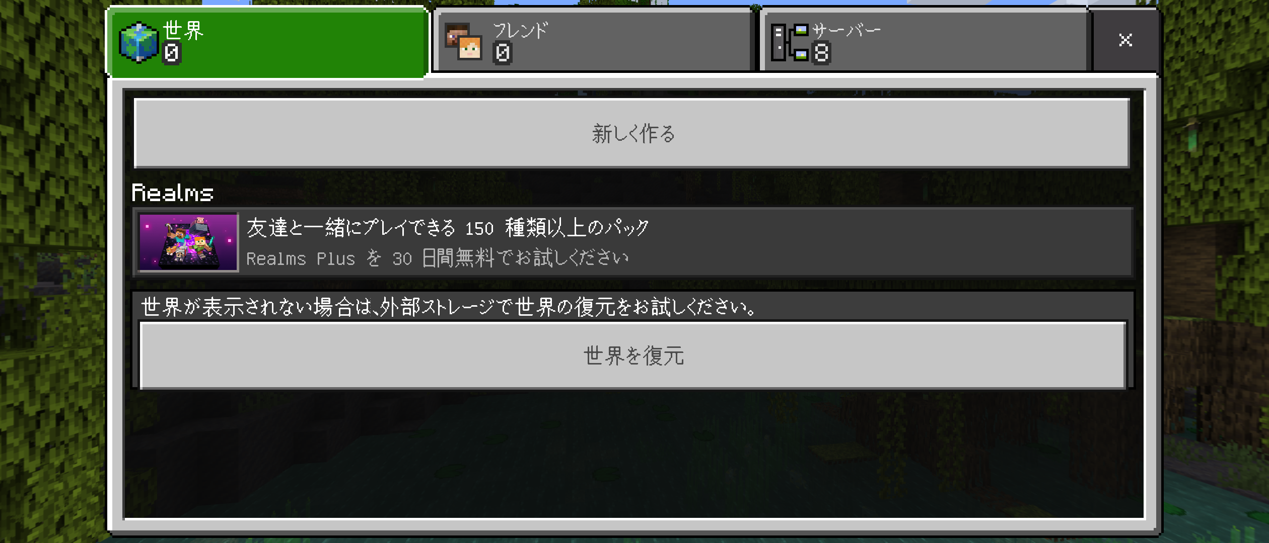 「遊ぶ」を選択し、「サーバー」タブを選択します。